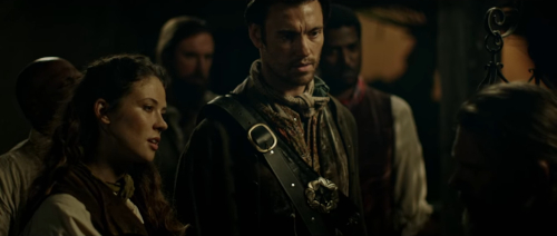Anne and Jack go to James’s work (lol) to bring him the money for their wife swap, but he is offended and tells Woodes Rogers. Woodes has Anne held down to be beaten (according to a talking head, there is “a law” to beat an adulterous woman) and offers the whip to Jack, but somehow (?) Anne gets free (?) and grabs a knife (?) and threatens Woodes.